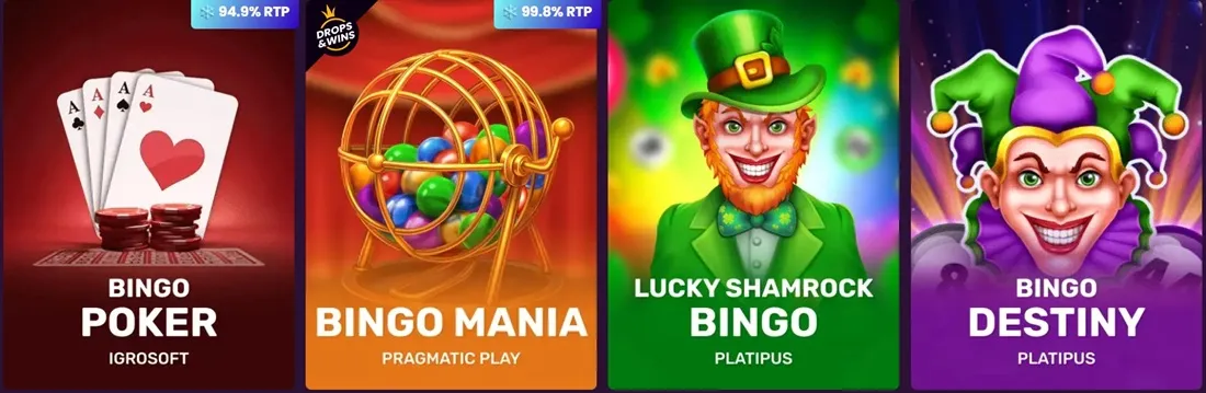 If you enjoy bingo-style games, you'll see some of these types of games in the "Fast Games" or "Game Shows" sections.